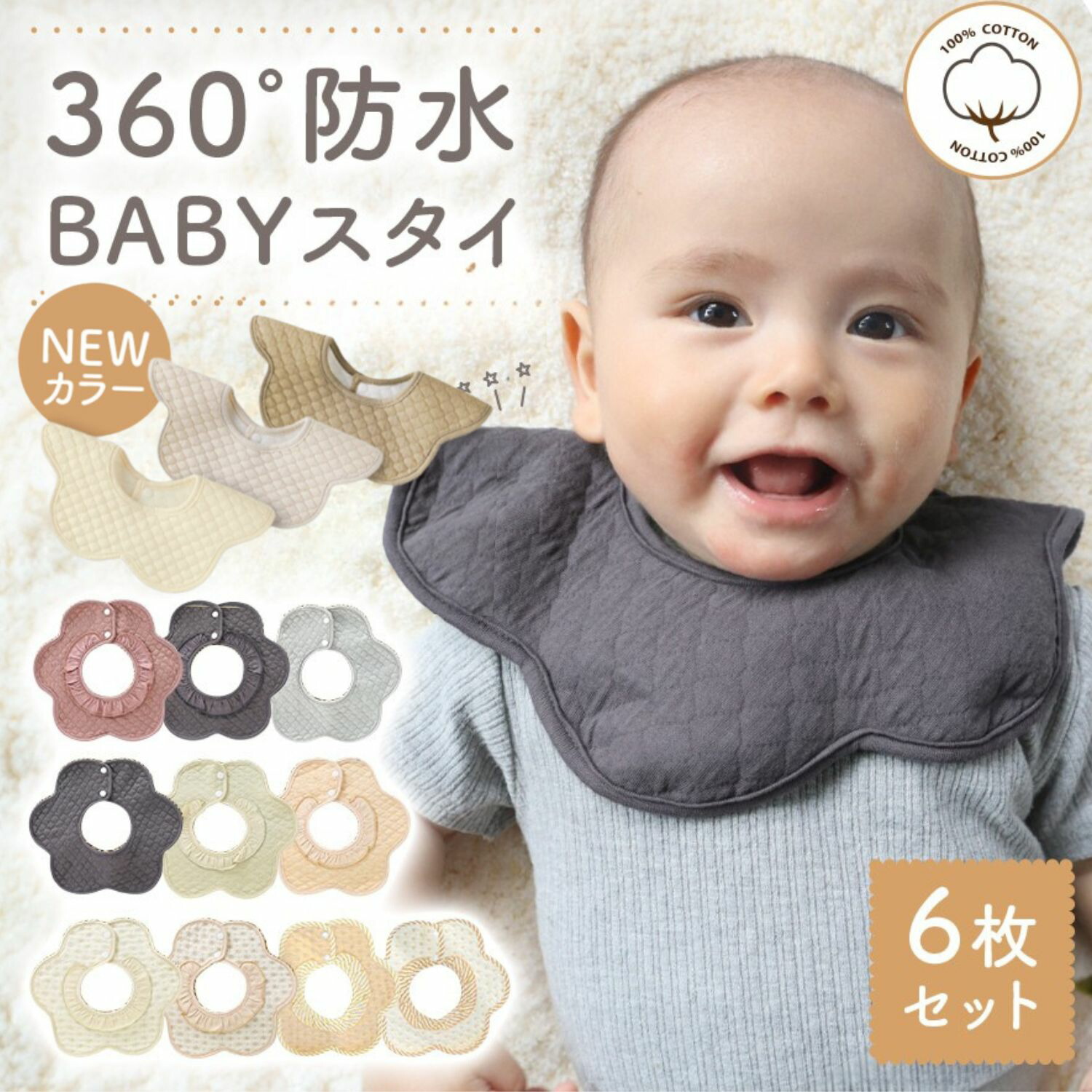 MarineBlueの360°防水ベビースタイは染みにくく、くるくる回して使えるため、普段使いに重宝していました。